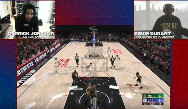 “线上比赛”已经在美国职业篮球(NBA)和美国职棒大联盟(MLB)进行。 NBA包括凯文•杜兰特(布鲁克林篮网)在内的16名球员从4日开始通过“NBA 2K20”在线游戏进行淘汰赛。在参赛选手中游戏内能力值最高的头号种子杜兰特以62-78不敌16号种子小德里克•琼斯(迈阿密热火),首轮即遭淘汰。