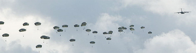 美国陆军对驻扎在本土的空降部队进行了为期9-10小时的大规模紧急部署演习。分析认为,继核(B-52)、传统式(B-1B)战略轰炸机靠前部署在关岛、阿拉斯加并在韩半岛附近的菲律宾海进行两个航母打击群的联合演习后,美国试图向朝鲜和中国展示区域内的战略优势。