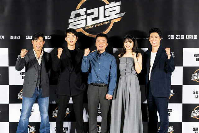下月23日上映的赵成熙导演的《胜利号》是韩国型宇宙科幻电影,被认为是今年最受期待的作品。2092年,宇宙垃圾清理船“胜利号”的船员们发现了被认为是大规模杀伤性武器的人类型机器人“多萝西”,并制定了巨额出售该机器人的计划。18日,赵导演和飞行员泰浩的扮演者宋仲基、“张船长”金泰梨、驾驶员“老虎朴”陈善奎、机器人“丑八怪”柳海真等人出席了线上制作发布会。