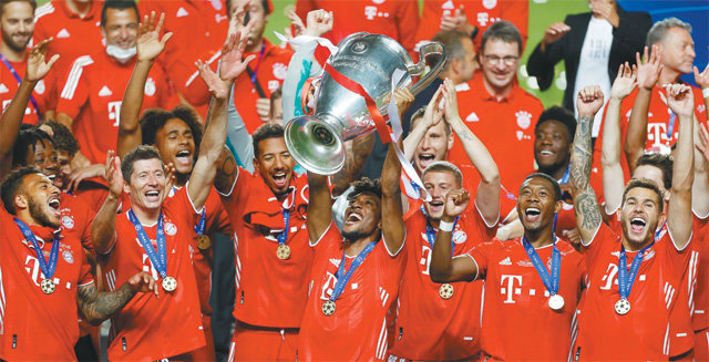 24日,莱万多夫斯基率领的拜仁队在葡萄牙里斯本光明球场举行的2019~2020赛季欧洲足球联盟冠军联赛(UCL)决赛上,凭借下半场14分钟出现的金斯利•科芒(24岁)的制胜球,以1比0击败了大巴黎队。队史第6次夺得欧冠冠军的拜仁队,在本赛季席卷了德甲联赛和德国杯、欧冠联赛冠军,达成了俱乐部历史上的第2次“三冠王”。在欧洲足坛,继FC巴塞罗那队(西班牙)后,拜仁是第二家成功完成2次三冠王任务的球队。另外,拜仁队在从小组赛到决赛的11场比赛中保持全胜,成为了欧冠联赛史上首个全胜冠军。