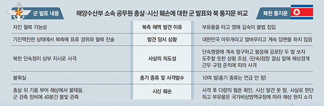 随着青瓦台25日公开朝鲜发来的通报,围绕韩国海洋水产部所属渔业管理员李某(47岁)被杀的经过,朝鲜的主张和韩国军方发表的内容,有相当一部分存在差异,因此争议正在扩散。在韩国舆论纷纷指责军方错失拯救李某的6小时“黄金时间”的情况下,仅隔一天就出现了反驳或推翻韩国军队判断的新情况。