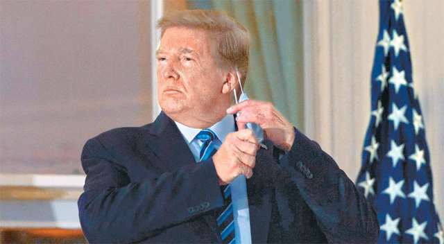 但医疗团队表示:“总统有可能向他人传播病毒,治疗方法还处于‘未知领域’。本周末将是关键。”据悉,直到当天上午,特朗普的幕僚们还劝其不要出院,但特朗普以“不愿让人觉得虚弱”为由强行返回白宫。