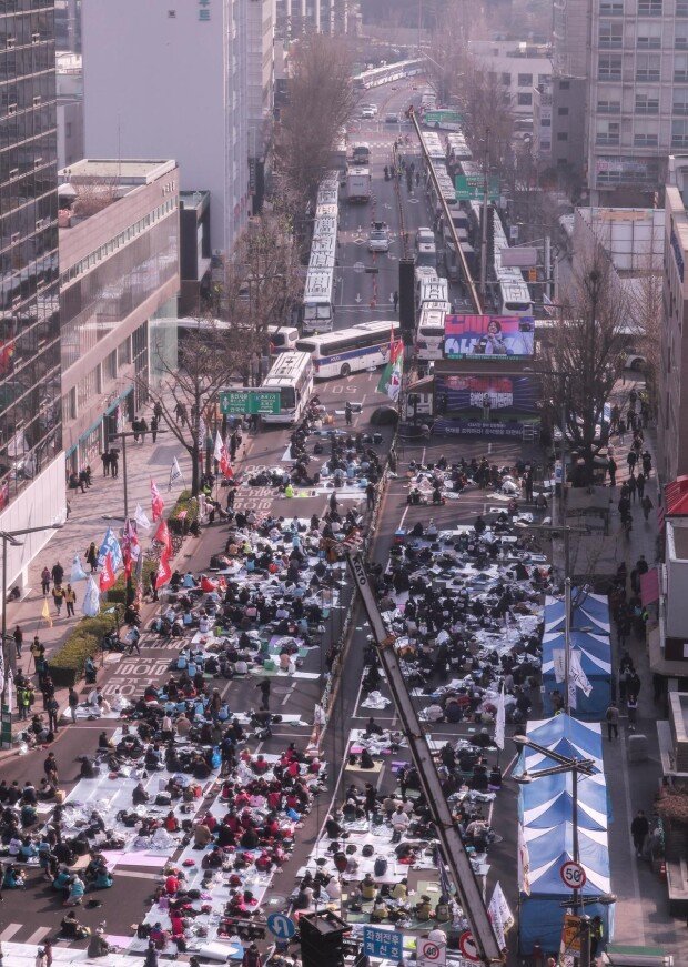 距离宪法法院对尹锡悦总统弹劾案的宣判还有一天,政界却纷纷前往国会外广场,向支持层主张赞成弹劾或驳回弹劾。与2017年朴槿惠前总统弹劾案确定宣判日后立即中断场外斗争、强调团结不同,朝野政党直到最后都在煽动对宪法法院判决的不服,人们担心弹劾案宣判以后还会出现混乱。
