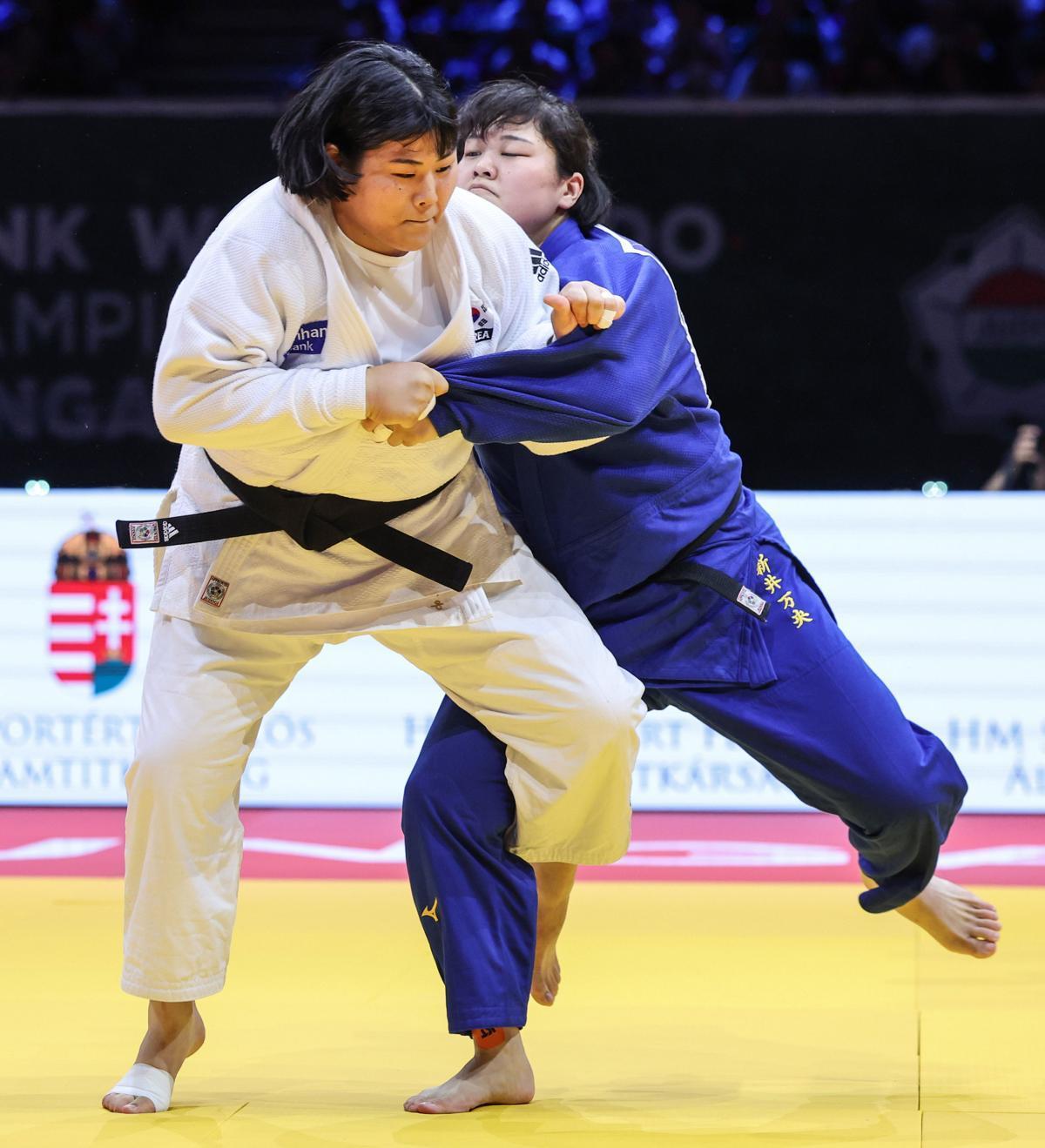 另一方面,世界排名第四的李贤智在铜牌争夺战中,以“腰车”一本胜击败排名第九的玛丽特•坎普斯(24岁•荷兰),摘得铜牌。挑战世锦赛两连冠的男子最重量级(100公斤以上级)选手金珉钟(25岁•杨平郡厅)当天也以“内股”半胜制服了塔梅尔兰•巴萨耶夫(29岁•俄罗斯籍个人中立选手),夺得铜牌。在加上此前男子81公斤级李俊奂选手(23岁•浦项市厅)赢得的铜牌,韩国队在本届大赛个人赛上最终以综合排名第六(1金3铜)收官。
