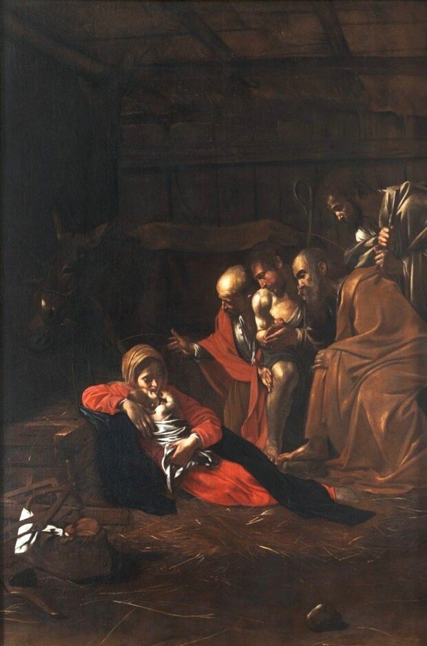 基督教文化圈中,耶稣的降生是长久以来备受画家们青睐的主题。圣诞的图像通常充满光辉与荣耀。天使划破天际降临,初生的耶稣已散发神性,圣母亦被理想化。然而,17世纪意大利画家卡拉瓦乔断然拒绝了这一习见的图式。