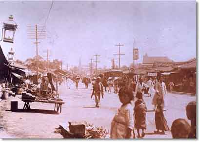 Àü½ÅÁÖ°¡ µµ·Î ¾çÆí¿¡ ¼ ÀÖ°í ÇàÀεéÀÇ ¿Õ·¡°¡ ºó¹øÇÏ´Ù. ¿ÜÂÊ »ó°¡¿¡´Â 1902³â 10¿ù ÇѼºÀü±âȸ»ç°¡ óÀ½ °¡¼³ÇÑ