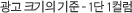 ÀÌ¿Í ¸¶Âù°¡Áö·Î ±¤°íÀÇ Å©±â´Â 1´Ü 1Ä÷³À» ±âÁØÀ¸·Î ÇÕ´Ï´Ù. 1´Ü 1Ä÷³À» 1´Ü ³ôÀÌÀÎ ¼¼·Î3.4cm, °¡·Î3cm Å©±â¸¦ ¸»ÇÕ´Ï´Ù.