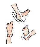 Æø 5cm ³ÐÀÌÀÇ Å×ÀÌÇÁ 2°³¸¦ ºÙÀδÙ. Çϳª´Â ¹ß¸ñ À§ ¾ÆÅ³·¹½º°ÇÀÇ À§Ä¡¿¡¼ ¾ÈÂÊÀÇ Áö¹æÀÌ ºÎÇ®Àº ºÎºÐÀ» ½Î´Â µíÀÌ Áö³ª ¹«¸ °üÀýÀÇ µÚÂÊ¿¡ °íÁ¤½ÃŲ´Ù. ´Ù¸¥ Çϳª´Â Á¾¾Æ¸® ¹Ù±ùÂÊ¿¡ °°Àº ¹æ¹ýÀ¸·Î ºÙÀδÙ. ¸¶¹«¸® Å×ÀÌÇÁ°¡ ¹«¸À̳ª ¹ß¸ñÀ» ÇѹÙÄû µ¹Áö ¾Êµµ·Ï ºÙÀδÙ. ÇÏ·ç 4¡5½Ã°£, Ȱµ¿ÀûÀÎ ½Ã°£À» ¼±ÅÃÇØ¼ ºÙÀδÙ.