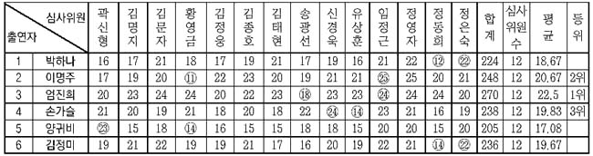 2.°¢ Ã⿬ÀÚ¿¡ ´ëÇÑ ÃÖ°íÁ¡¼ö¿Í ÃÖÀúÁ¡¼ö¸¦ Á¦¿ÜÇϰí Áý°èÇÔ (¡ÛÇ¥ÇÑ ¼ýÀÚ´Â ÃÖ°íÁ¡ ¶Ç´Â ÃÖÀúÁ¡)