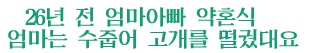 Ãæ³² žȱº ¼Ò¿ø¸é ½Ã¸ù¸® µ¿±¸¿¡¼ µÚÂÊÀÇ ÀÛÀº »êÀ» ¹è°æÀ¸·Î ÇÑ ¾àÈ¥±â³ä »çÁøÀº ½Ã´ëÀÇ º¯È¸¦ Àý°¨ÄÉ ÇÑ´Ù.