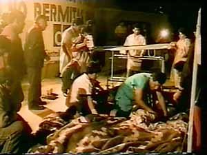 규모 7.9의 강진이 발생한 페루의 타크나에서 23일 의료진이 부상자들을 응급 치료하고 있는 장면이 현지 방송을 통해 방영되고 있다.