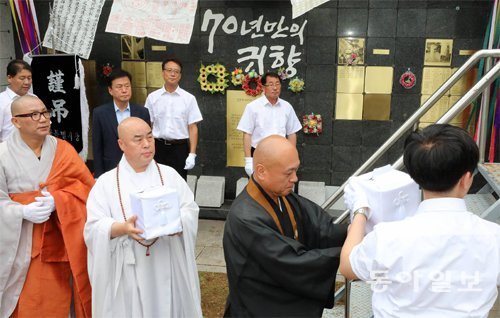 ソウル市は16日午前、京畿道坡州市広灘面(キョンギド・パジュシ・クァンタンミョン)のソウル市立龍尾里(ヨンミリ)第2墓地公園で、強制徴用犠牲者の遺骨33体の安置式が行われた。