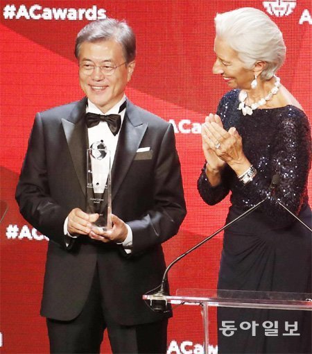 地球市民賞は、国際協力・紛争解決を研究するワシントンの代表的なシンクタンクの一つである大西洋評議会が作った賞で、世界の市民意識の実現と民主主義の発展に貢献した人に授与されている。今年は文大統領と共にカナダのトルドー首相、中国人ピアニストのラン・ラン氏が授与された。