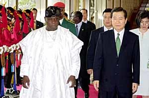 21日、訪韓したオバサンジョ・ナイジェリア大統領が青瓦台(チョンワデ・大統領官邸)で金大中大統領と共に公式歓迎行事を行っている。