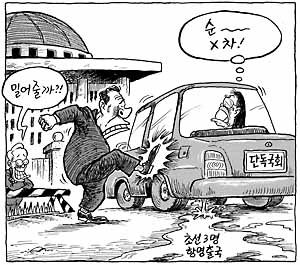 金鐘泌(キム・ジョンピル)[「単独国会」ナンバープレートをつけた車に乗っている]:まるっきりポンコツじゃないか...