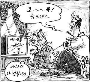 国民(テレビを観ながら泣いていたが、慌てて医師を振り返り一人つぶやく):あっ!そうだ僕、人質だった!