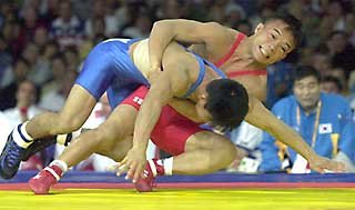 96アトランタオリンピック金メダリスト、シム・グォンホは25日、シドニーダルリンハーバー展示ホールで行われたレスリンググレコローマン54㎏級準決勝で、北朝鮮のカン・ヨンギュンをテクニカルファール(10−0)で破り、決勝に進出した。