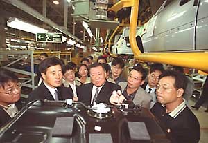 27日(水)、現代自動車のトルコ工場を訪問した現代自動車の鄭夢九(ジョン・モング)会長が、現地の生産責任者達に励ましの言葉をかけている。現代自動車はトルコで生産した自動車をEUと東ヨーロッパへ輸出する計画だ。