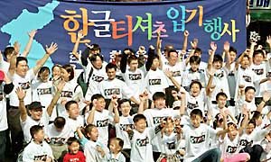 ハングル(韓国の言語)の日を1日前に控えた8日(日曜日)、ソウルの鐘路(ジョンロ)区ドンスン洞の大学路に位置するマロニエ公園で、市民と学生などによる「ハングルのTーシャツを着ましょう」というキャンペーンが繰り広げられている。
