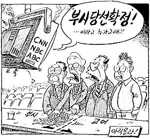 TV中継(CNN、NBC、ABC):ブッシュ当選確定!、、、だれがいうの?!