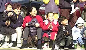 「パパ、ママがんばって!」「あなた、がんばってね」。マラソンのスタートラインに集まった参加者の家族らが、励ましの拍手を送りながら完走を祈っている。