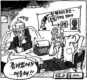 タイトル:心証と物証の狭間(検察の首脳部に対する弾劾処理が霧散となりながらハンナラ党は主犯として民主党と青瓦台《チョンワデ・大統領府》に目星をつけ、共犯としては国会議長を疑い調査中だ)。