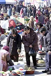 旧正月を10日後に控えた14日、京畿(キョンギ)城南(ソンナム)市の5日市場(5日間隔で開かれる市場)で有名なモラン市場は、厳しい寒さにも関わらず、一日中お供え物などを求める人たちで混雑した。