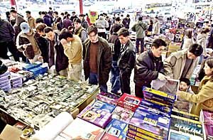 卒業、入学のシーズンを迎え11日、新製品または、部品を購入する客で、ャEル市龍山(ヨンサン)のコンピューター蚤の市が大変混雑した。