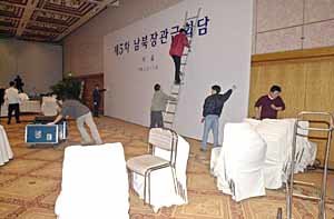 第5回南北閣僚級会談の準備を進めてきたソウル新羅(シンラ)ホテル側が、13日(火)、会談が突如延期されることになり会談場や待機室などの施設を取り払っている。