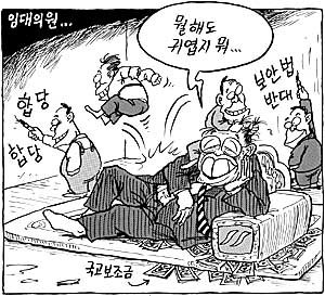 金鐘泌(キム・ジョンピル)自民聯総裁(国庫補助金の上に寝転がっては):何をしでかしても憎めないわ。