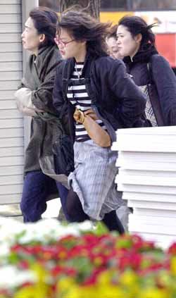 26日(月)ソウルの気温が急に下がるや、ソウル市中区(チュング)乙支路(ウルチロ)で女性達が肩をすくめながら小走りで歩いている。