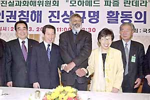 訪韓中の南アフリカ共和国の‘真実と和解委員会(TRC)’のモハメッドパズル・ランデラ-博士(中央)が30日国会貴賓室の食堂で‘国会人権政策研究会’の所属議員と懇談会を持った。