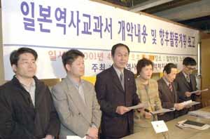 「日本歴史教科書改悪阻止運動本部」が3日ソウル市鐘路(チョンノ)区安国(アングク)洞のある喫茶店で記者会見をもち、韓日共同闘争を宣言している。この日、日本の12ヵ所の市民団体も東京で同じ内容の記者会見をもった。