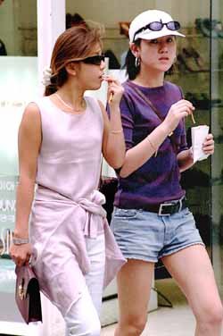 ソウルの昼の気温が28度を越え、真夏の気温を記録した9日(月)昼の明洞(ミョンドン)通り。サングラスにノースリーブ、ホットパンツ姿はまったく不自然ではない。