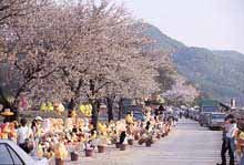 カプハ山とトドク峰の間にあるサプジェから東鶴(トンハク)寺の切符売り場まで続く3kmの区間は、道の両側に500本を超える桜の木が並び、満開になった時の眺めは壮観だ。行楽客の数も少なく、比較的ゆったりと桜を鑑賞することができる。桜が風に吹かれる時は、まるで雪国に来たような気分になれる。