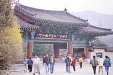 湖南高速道路で昇州インターチェンジで降り、サンサ湖の西側の832番地方道路に入って7km程行くと仙岩寺。日帰りの日程では余裕がないと思ったら、付近の楽安邑城民俗村の草葺きの民宿に泊まる要領で旅行の計画を立てるのもいいだろう。
