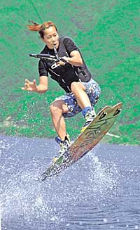 ヒョンジャさんもやはり、モデル時代からスタイルを保つために各種のレジャースポーツを楽しんでいた中、4年前にウェークボードに出会って、それまでの人生が一変した。モデルの仕事をやめてウェークボードに夢中だった頃、パソコン通信の同好会でスギョンさんに出会った。