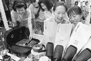 ソウル新村(シンチョン)グランドマートは、14日までに「アウトドア用品企画展」を開き、各種の旅行用品を最高40%まで割引販売する。3日、売場を訪れた人々が多様な色のスキューバダイビング装備と登山用品をみている。