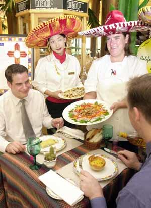 14日、メキシコ料理フェスティバルが開かれているソウル・ヒルトンホテルのレストランで、メキシコから特別招待された料理長のカラルニーさん(中)が直接作った料理を客に出している。