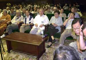 平壌(ヒョンヤン)「8・15民族統一大祝典」に参加している韓国側の代表団が17日午前、高麗(コリョ)ホテルで全体会議を開き、深刻な表情で閉幕式に参加するかどうかをめぐる問題について話し合っている。