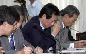 12日、米国のテロ事件による対策を話し合うため、チェ・ソンホン次官主宰で開かれた外交通商部の対策班会議で、参加者らが粛然とした雰囲気の中、協議を行っている。