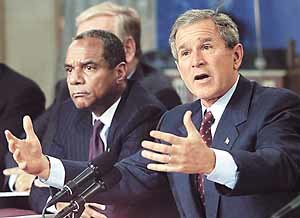 ブッシュ米大統領が3日、ニューヨーク証券取引所の近くにある連邦庁舎で財界指導者らと会い経済回復に向けた政府の意志を強調している。ブッシュ大統領は議会に大規模の景気浮揚策を要請した状態。