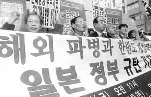 民族和解自主統一協議会の会員らが2日午前、ソウル鐘路区(チョンログ)チュンハク洞の日本大使館前で「自衛隊の海外派遣と韓半島の再侵略を策する日本政府を糾弾する」集会を開いた。
