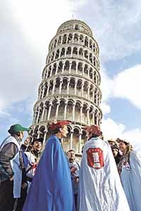 11년간의 보수공사를 거친 피사의 사탑이 15일 일반에 다시 공개됐다. 58m 높이의 이 종탑은 90년 1월 꼭대기가 수직으로부터 4.5m까지 기울어지면서 붕괴 우려가 제기돼 보수에 들어갔었다. 이탈리아 당국은 보수공사에 540억리라(약 330억원)를 들여 기울기를 44가량 바로잡는 데 성공했다.