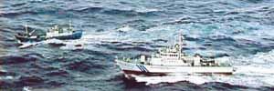 日本の海上保安庁の巡視船が22日午後、日本の漁業水域である排他的経済水域(EEZ)の侵犯後、逃走している不審船を追跡している。朝鮮民主主義人民共和国(北朝鮮)の工作船と推定される不振船は巡視船と交戦し沈没した。(AP=連合)