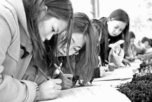 9日、ソウル西大門区南加佐洞(ソデムング・ナムガザドン)明知(ミョンジ)専門大学で、受験生が大学入試願書の受け付け締め切りを控えて、真剣な表情で願書を書いている。