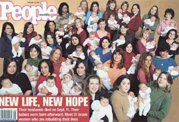 9・11テロで夫を失った31人の夫人とその遺児らの姿を撮った米週刊誌ピープルの最新号(2月25日付け)の表紙。ピープルはカバーストーリーで、この夫人らが悲しみを乗り越え、新しい人生を始めようとする姿を撮っている。