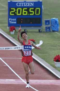 分51秒のアジア最高記録の保持者、藤田いすし。25才の若い藤田は2000