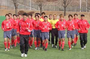 「新しいユニホーム、新しい心」。韓国サッカー代表チームの「10期ヒディンク師団」が4日、京畿道坡州市(キョンギド・パジュシ)にある国家代表訓練センター(NFC)で、新しいユニホームを着て運動場を走りながら練習を行っている。サッカー代表チームは5日スペインへ出発し、28日まで転地練習とチュニジア、フィンランド、トルコとの試合を通じ、戦力の向上を図る。