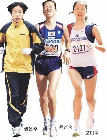 韓国の女子マラソンはクォン・ウンジュ(三星電子、25)、ユン・ソンスク(ソウル都市開発公社、30)、オ・ミジャ(益山市庁、32)の3人が主導している。韓国最高記録(2時間26分12秒)を保有しているクォン選手をはじめ、東亜(トンア)ソウル国際マラソン(ユン・ソンスク)、朝鮮(チョソン)日報春川(チュンチョン)マラソン(クォン・ウンジュ)、全州(チョンジュ)群山クンサン)マラソンなど、各種大会はこの3人の舞台だった。しかしこれまでこの3人がそろって走ったことは一度もなかった。